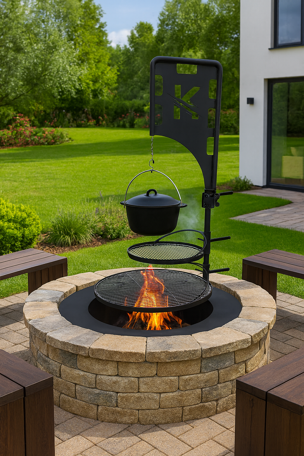 Palenisko PREMIUM do zabudowy kamiennej z funkcją grilla i kociołka